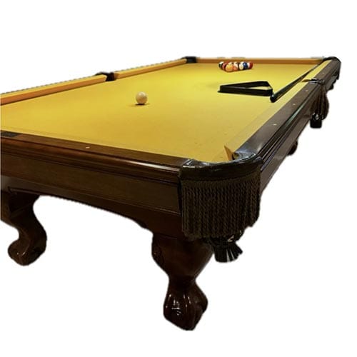 Price includes installation with new felt (any color). Full play-pack which includes, 4 cue sticks, bridge stick, 15 ball and 9 ball rack, brush, set of balls, and chalk.